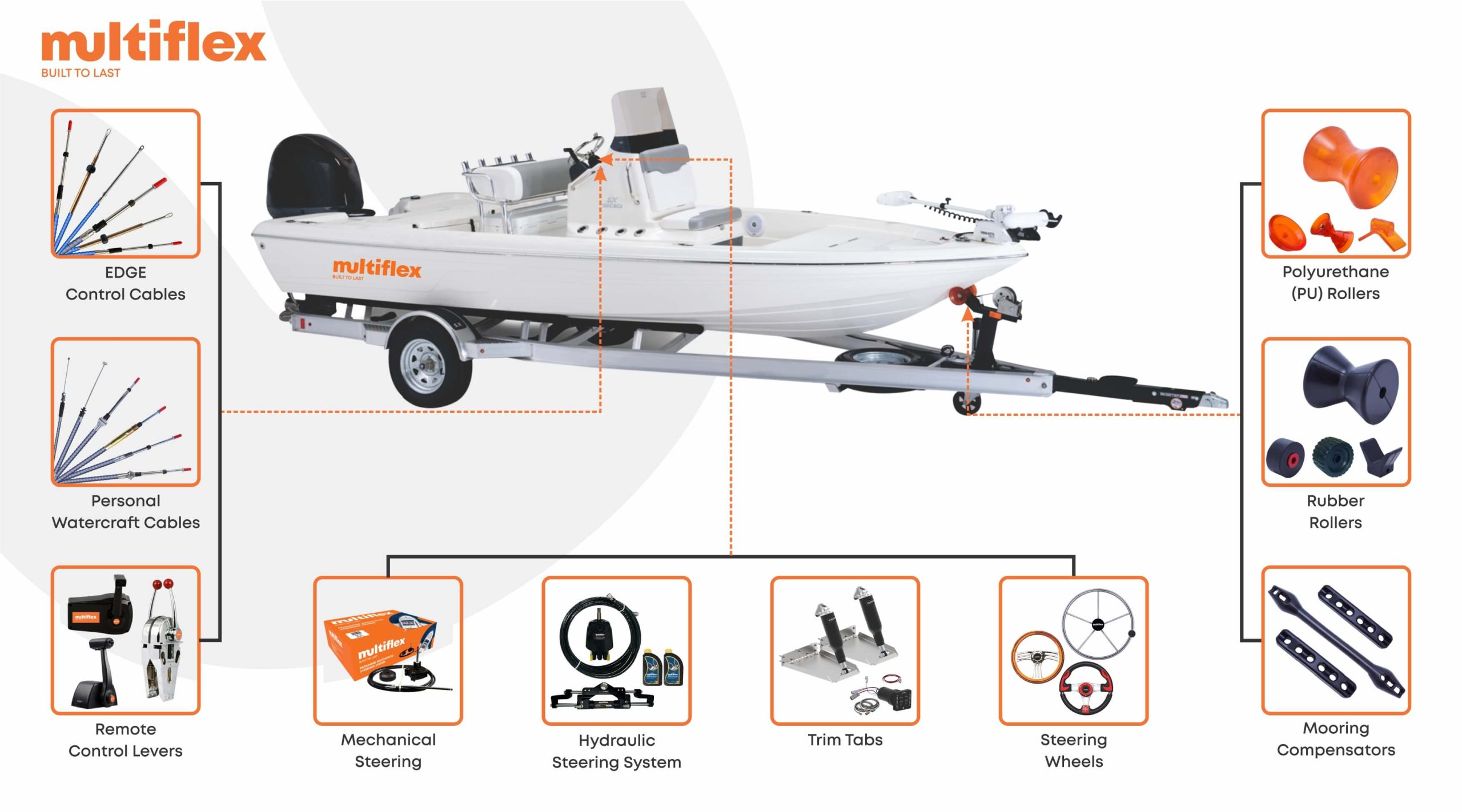 - Comprehensive Solutions: We deliver a comprehensive range of solutions, including control cables, steering systems, remote control levers, boat trailer PU and rubber rollers, and mooring compensators. Each product is expertly crafted to meet the diverse and exacting needs of boats and personal watercraft, ensuring unmatched versatility and performance.